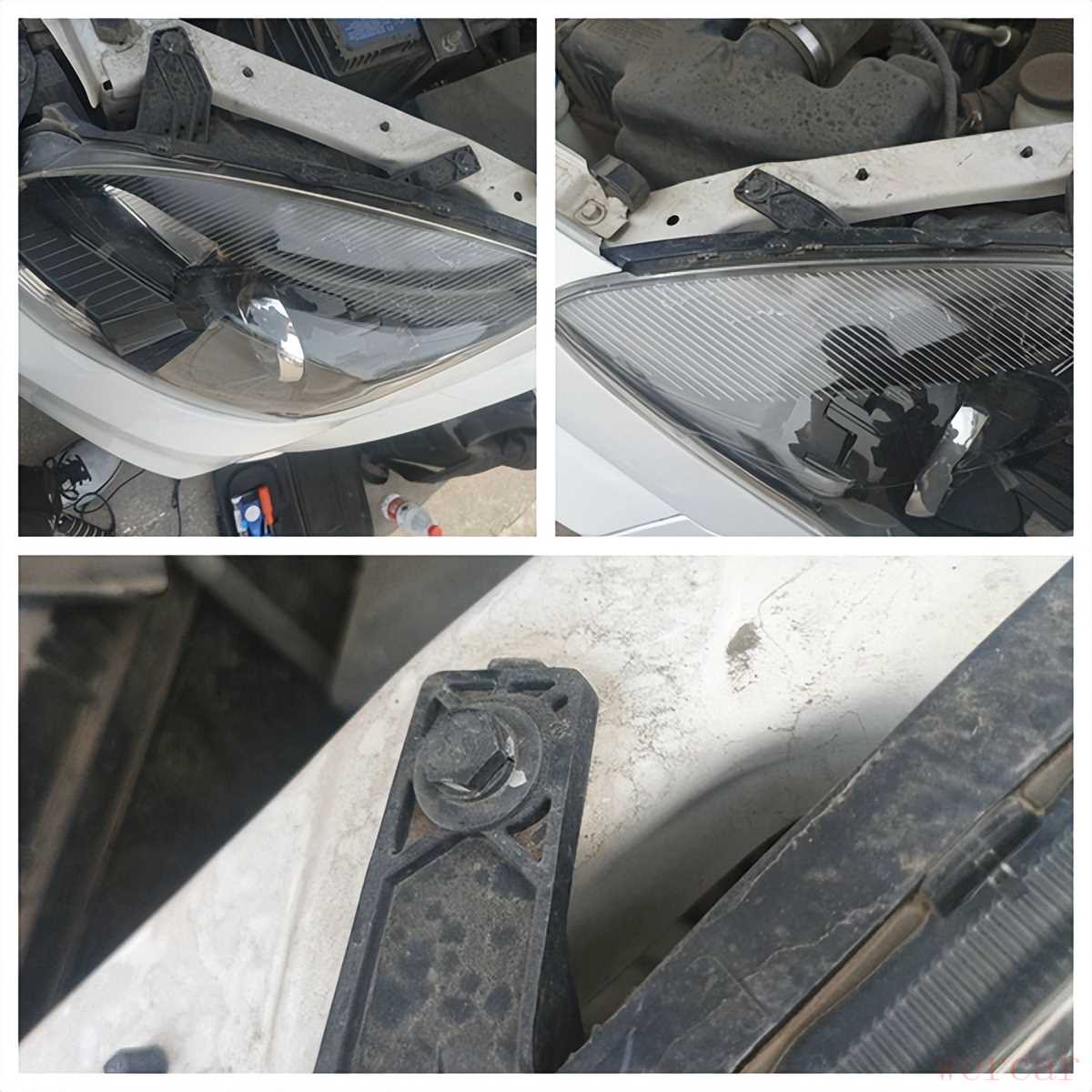 首先验外观,从车头开始,前保险杠的左右缝隙不一致,而且有明显喷漆的痕迹,边缘都是拿螺丝固定的,说明前杠有过更换。