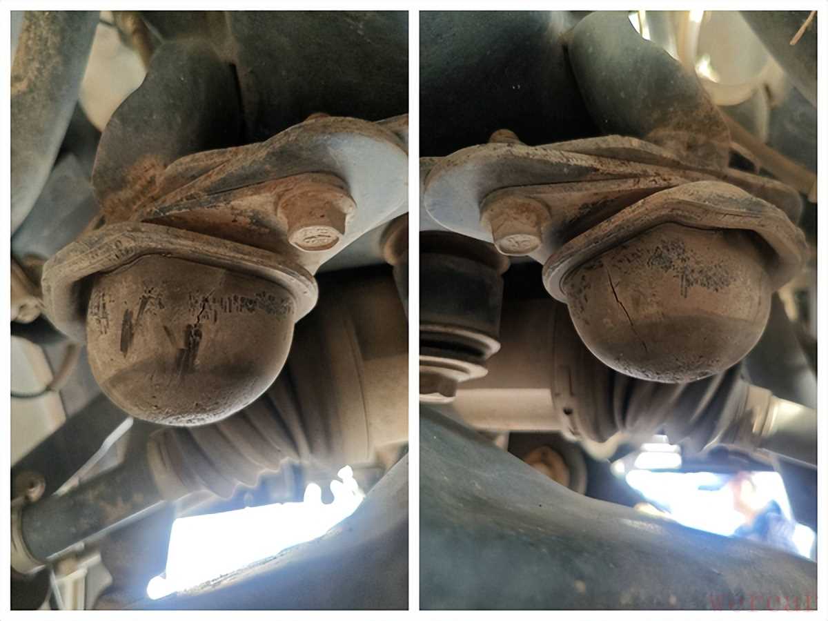 16万公里,石大哥还能接受,无非就是再砍砍价,所以我们继续看底盘。这款H5是非承载式车身,前后大梁非常结实,目前没有撞击变形损伤维修的情况,但是局部生锈了,两侧承载处也开裂了,能看到细小的裂缝!