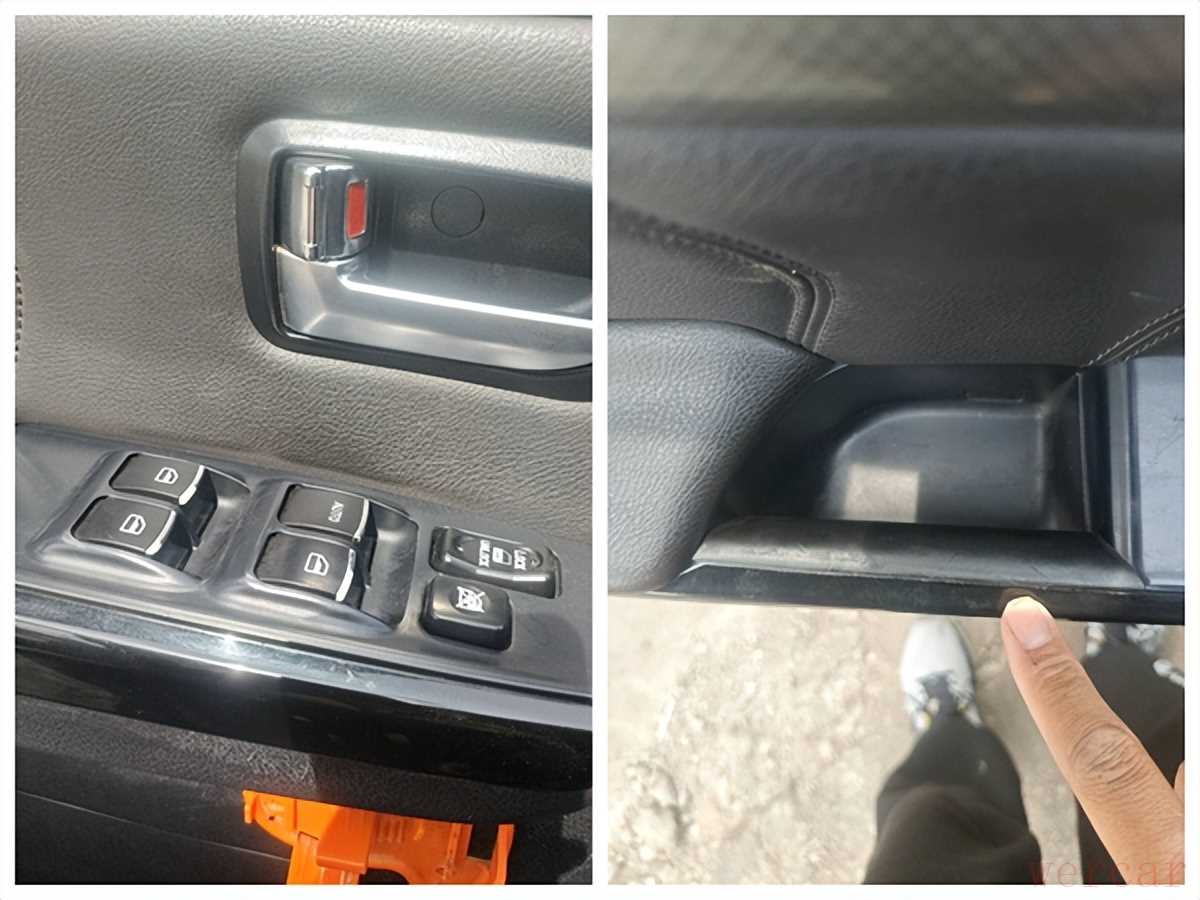 接下来检查内饰,打开车门就看到玻璃按钮有磨损掉漆的痕迹,内拉手也包浆了,才开六年,不能说按键的质量不好吧?