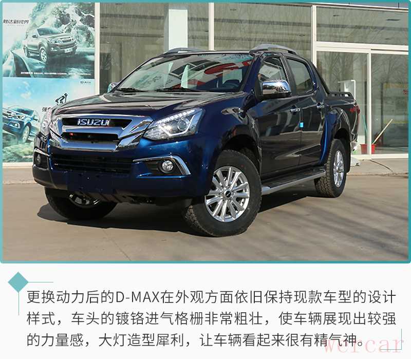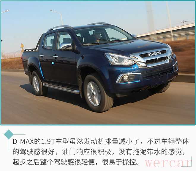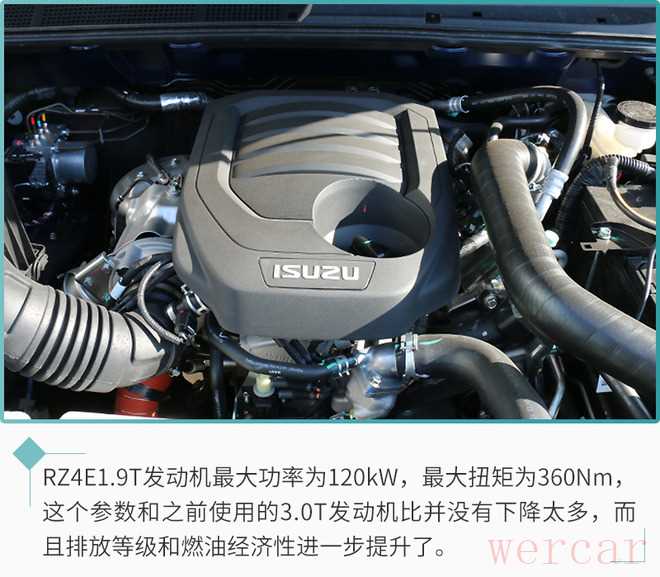 此前D-MAX配备的3.0T柴油发动机最大功率130kW,最大扭矩430Nm,可以看出新配备的1.9T发动机排量减小之后性能却没有过多降低,做到了小排量大功率。