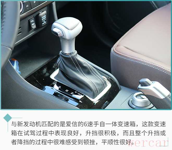 良好的动力还需要优秀的传动系统来配合,与这台1.9T发动机匹配的是来自爱信的6速手自一体变速箱,这台变速箱的表现同样十分优秀。