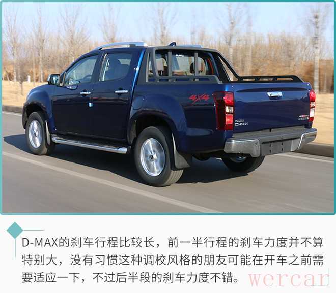 不夸张的说,D-MAX驾驶感受很像一款SUV车型,方向指向比较精准,方向盘的虚位并不大。