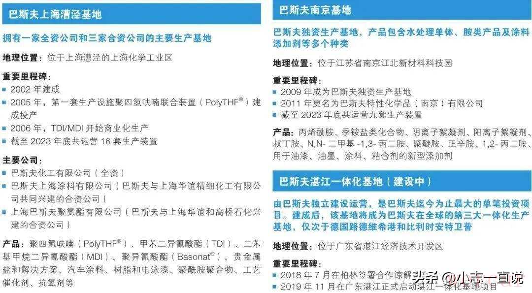 巴斯夫大中华区主要生产基地: