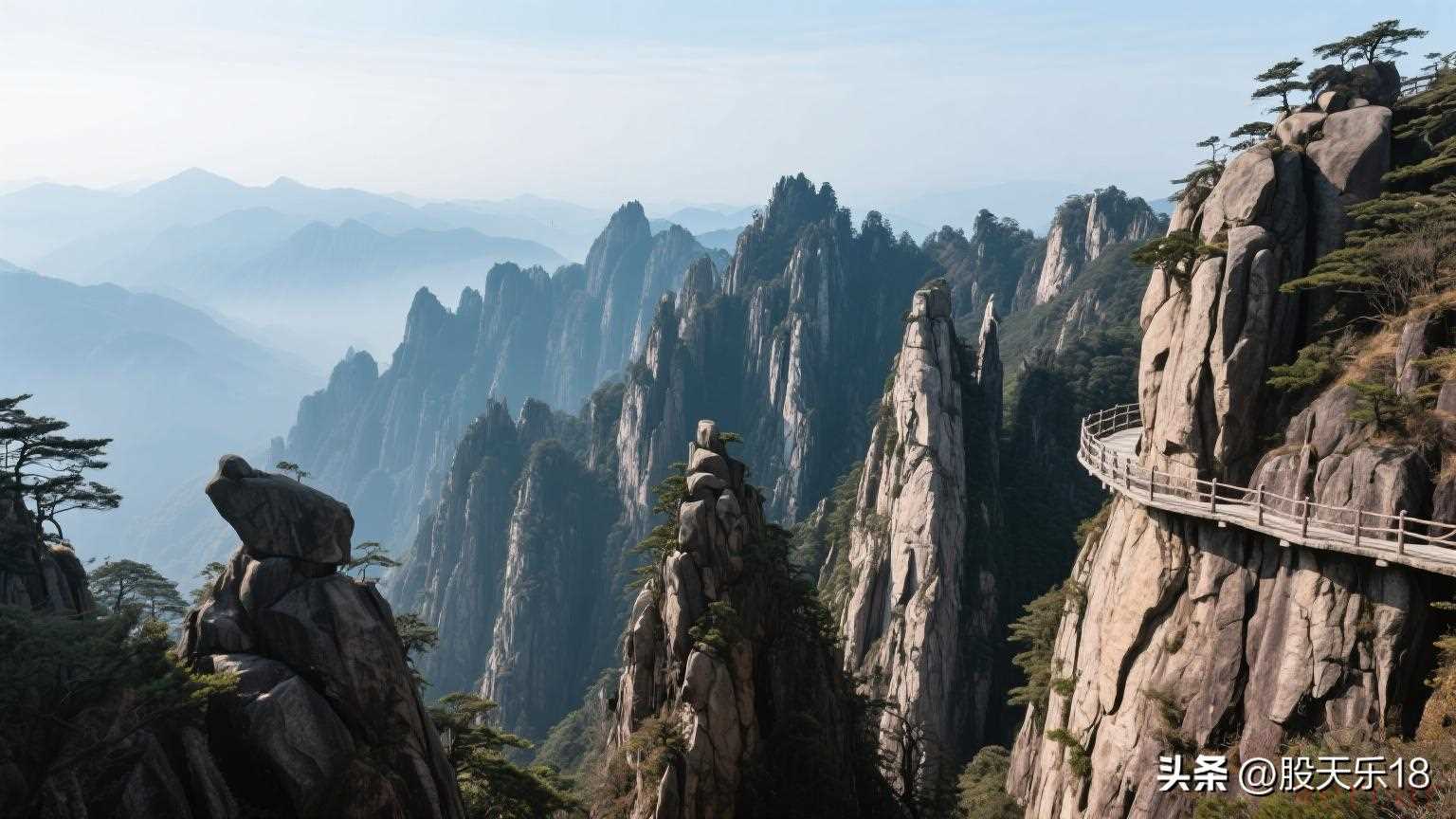 “十里画屏”是老君山自然景观的精华所在,拥有世界规模最大的花岗岩峰林奇观 。这里的花岗岩峰林形状奇妙,有的像利剑直插云霄,有的像仙女亭亭玉立,有的像动物栩栩如生,一步一景,让人不禁感叹大自然的鬼斧神工。沿着绝壁栈道前行,一侧是峭壁千仞,一侧是万丈深渊,惊险刺激的同时,还能欣赏到无与伦比的美景,随手一拍都是电脑桌面级别的大片。