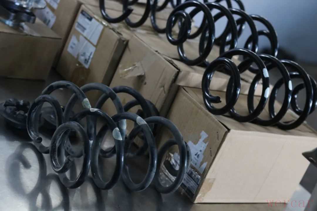 拆下车上的弹簧和咱们订的原厂弹簧进行对比。