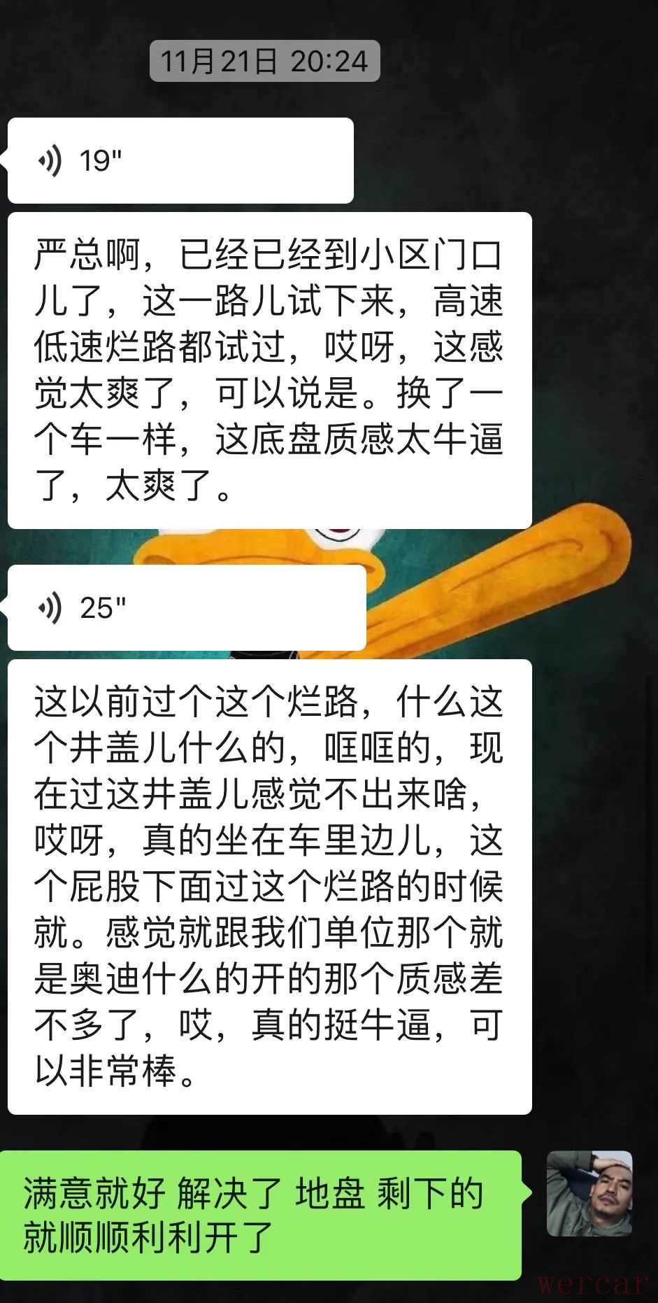 车主亲自来接车,开回北京,一路高速、烂路、低速、井盖都试了,对咱们的整备效果,可以总结两个词儿:太爽了,太牛了。