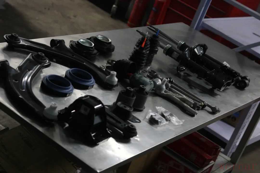 接着到底盘系统的整备,这车路试底盘的时候,真是把我吓一跳,整体咣咣的散,避震嘎嘎的硬,相当不协调,相当不舒服!这小车底盘结构不复杂,但这些配件都是重点。