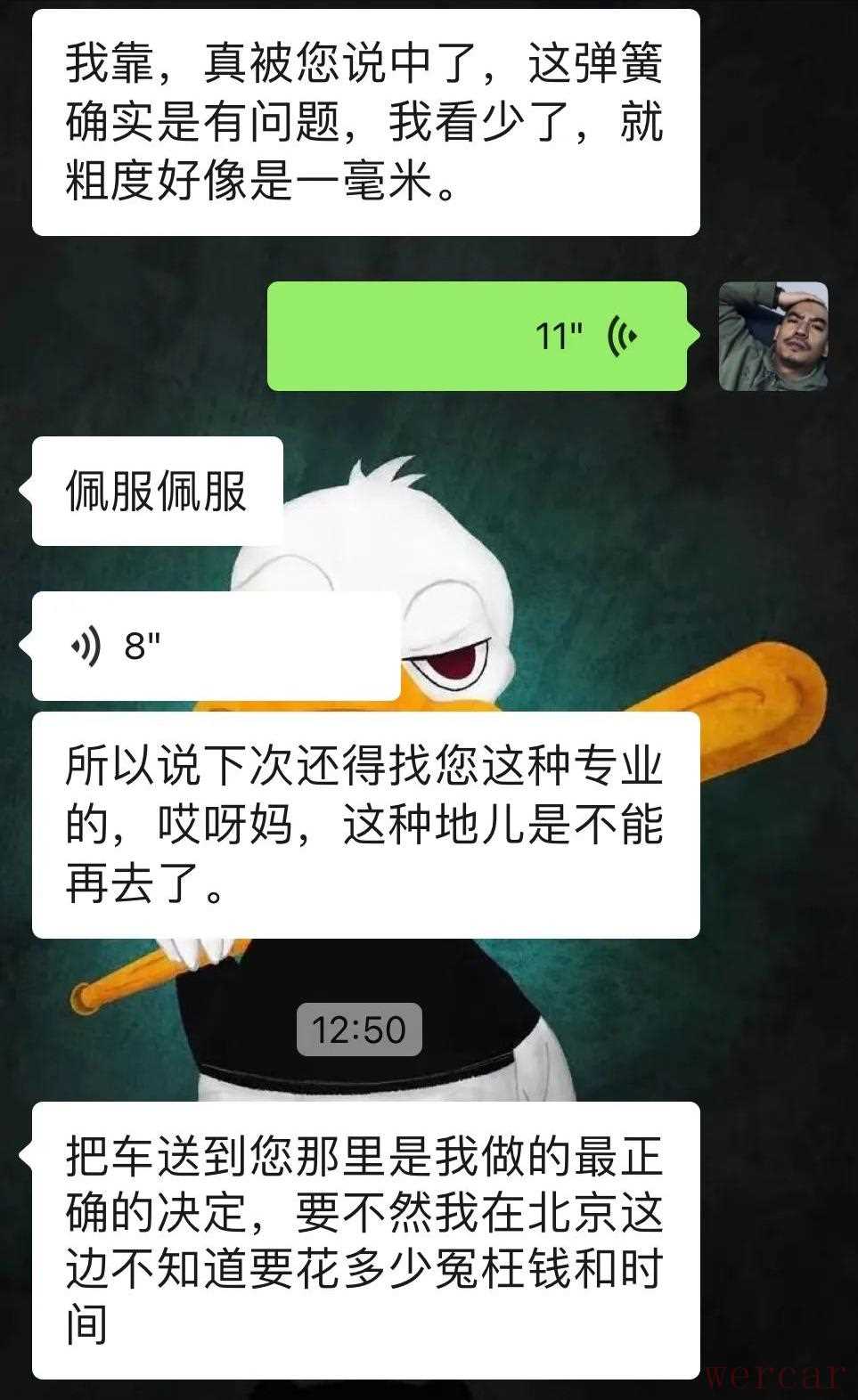 针对减震特别硬这事,这次又要破案了,因为这车之前在北京维修店换过避震和弹簧。