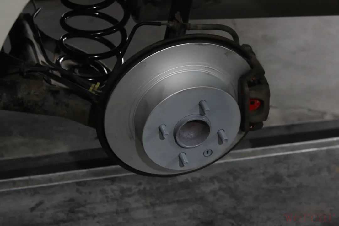 组装好原厂避震器+弹簧,其实真正原厂弹簧上面还有一个小细节,就是会有点漆标记以及贴纸标签的编号。这车用的高仿弹簧是没有点漆的,所以咱们就一眼假了。