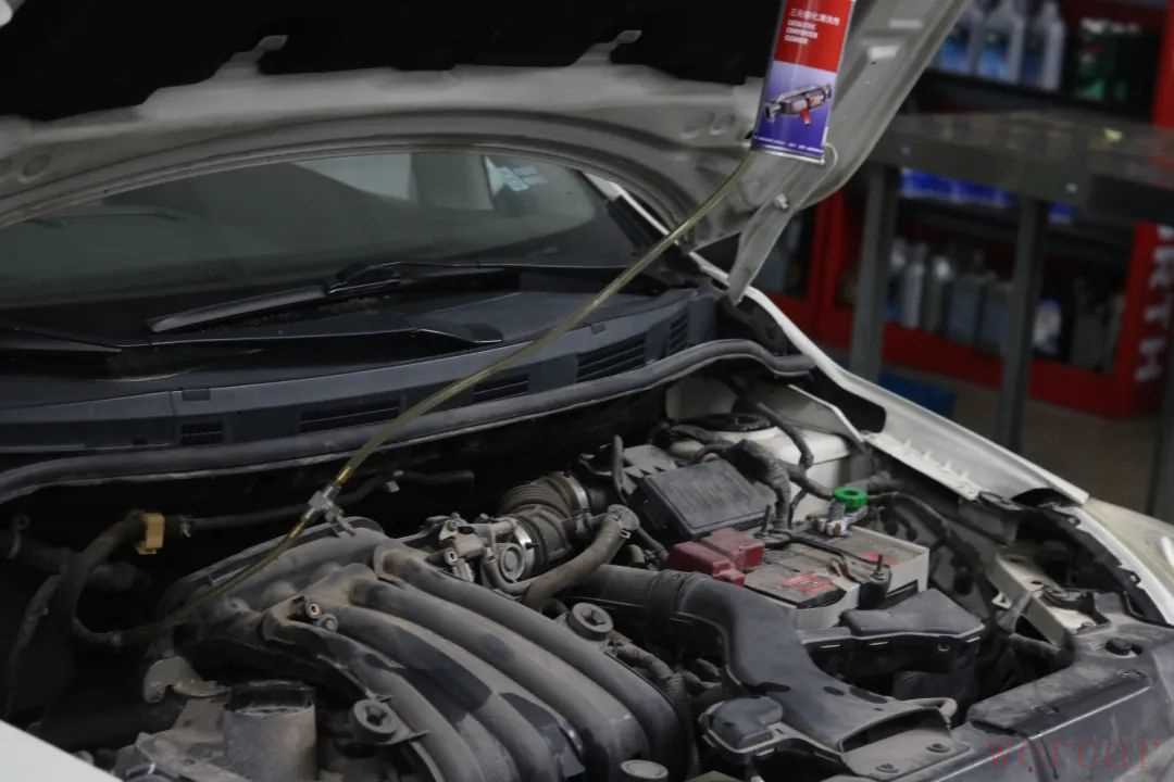 开搞了,添加发动机内部清洗剂,先把旧油放干净。