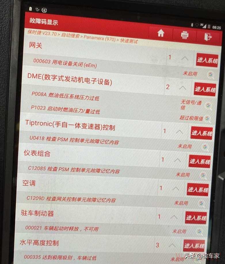 拿出OBD电脑读取了故障码,报发动机燃油压力低故障,消码消不掉,故障依旧,多年的修车经验告诉我,怠速抖动跟燃油压力低有很大关系,油压达不到车辆必然会出现抖动,加油无力,启动困难,容易熄火等症状!接着使用听诊器听了下发动机,判断机舱异响是发动机链条的声音,对于8万公里以上的帕拉梅拉来说,链条也是很容易出问题的,也算是这款车的一个通病!整备维修燃油压力和链条这两个问题的话费用会很高。