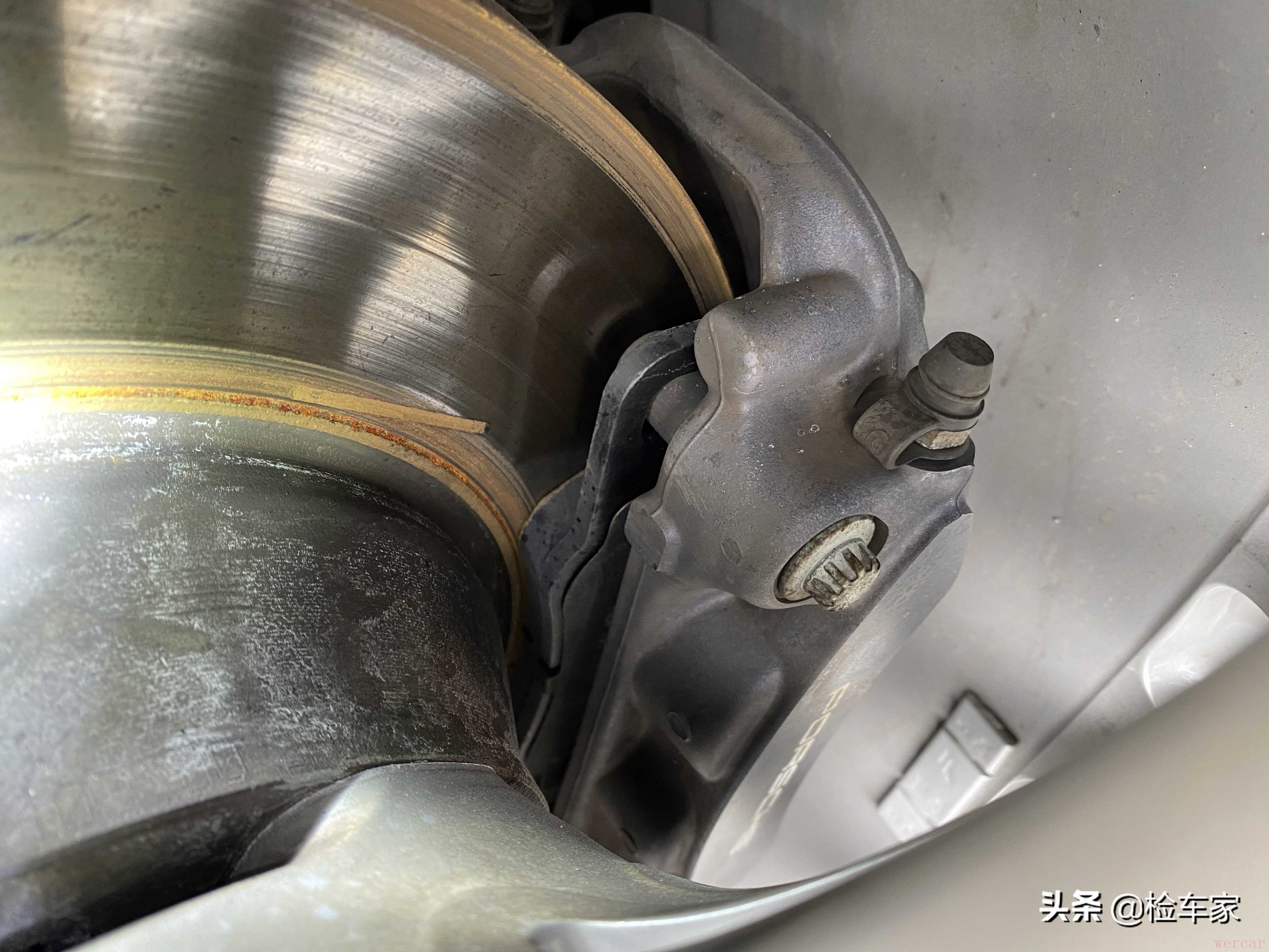 前后刹车片也是后更换的,厚度还有90%,除暴力驾驶外,差不多还可以正常行驶4万公里左右,暂时不需要更换。