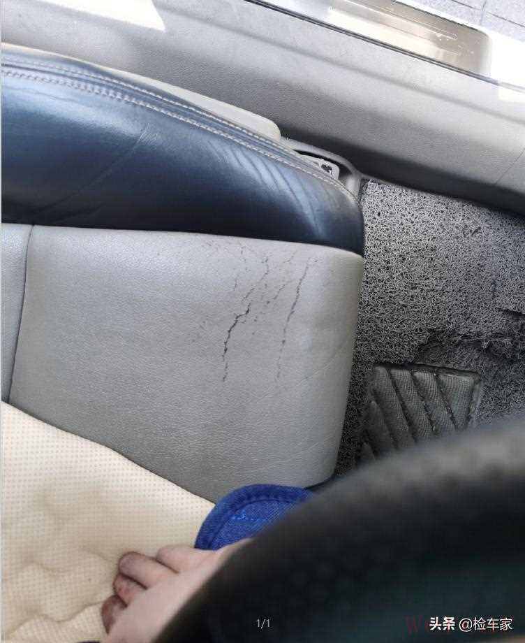 掀开主驾座椅上面的坐垫就露出来了它的本来面目,看到座椅上面的裂痕,直觉告诉我绝对有问题。原本就对公里数产生怀疑,看到这主驾座椅的磨损,更加坚定了我的猜测,但是单凭这一点还不够,还需要有更多的证据。