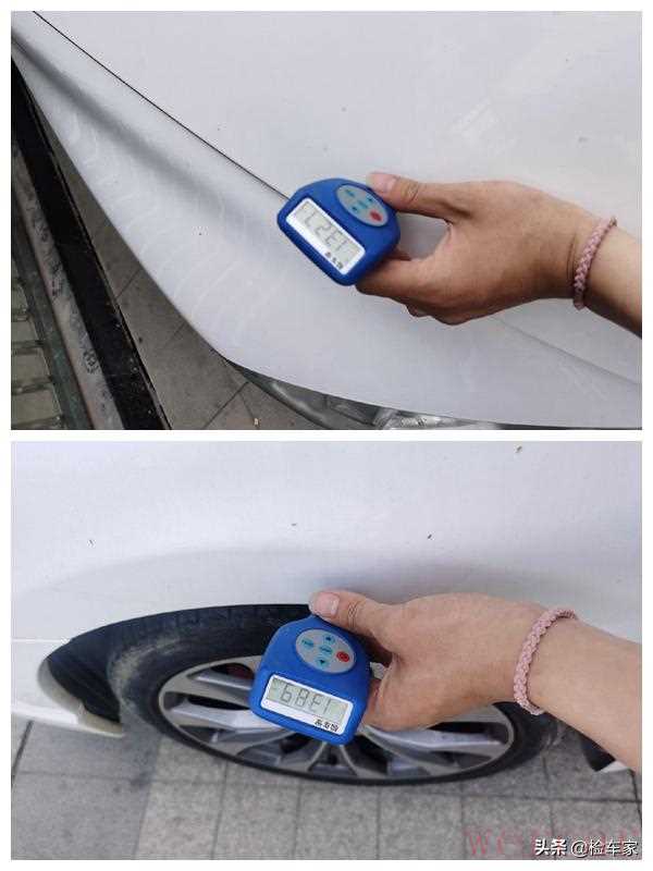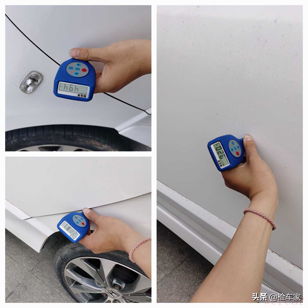 前机盖和左前叶子板的漆面看着不错,但实际测出来都有一千多微米的厚度,两个面都有不同程度的钣金修复,而且从机盖钣金的位置来看,右边的叶子板估计也跑不掉,待会得注意下。