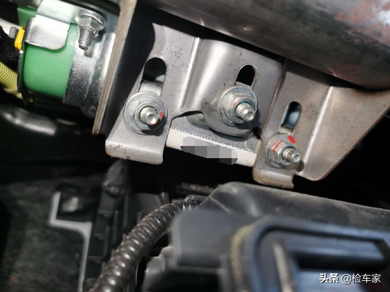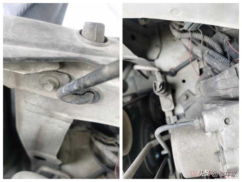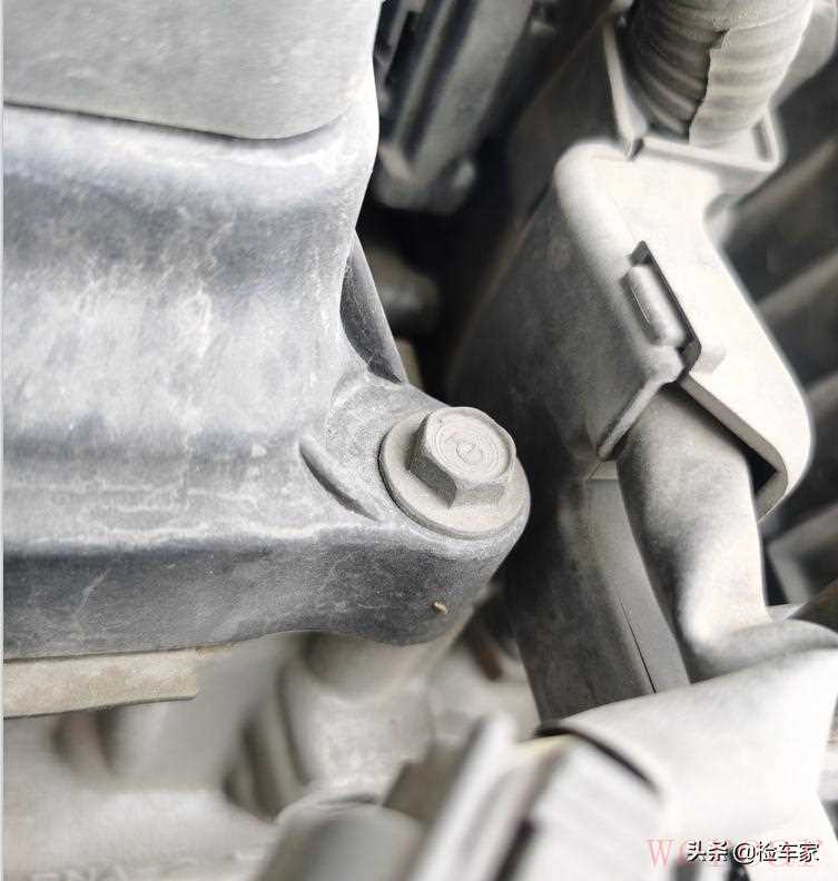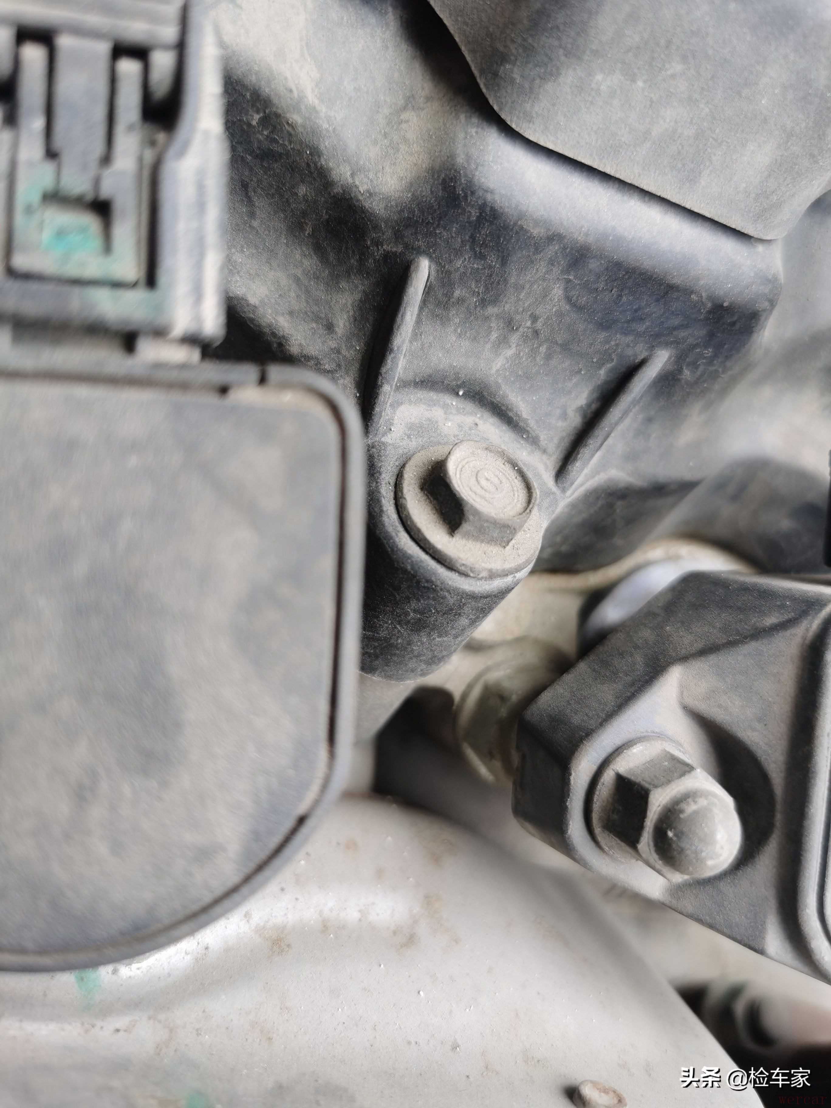 发动机部位首先检查的当然是机爪,机爪是连接车身和发动机之间的重要桥梁,同时还起到一个过滤抖动的作用。所以说要是想要吊装发动机或者变速箱的话,机爪就是必须要拆的。仔细观察机脚螺丝没有发现双向受力的拧动痕迹,也就排除了发动机吊装的可能。不过由于年限的原因,机爪出现了下沉老化的现象,这样的话就需要进行一个后期的更换。