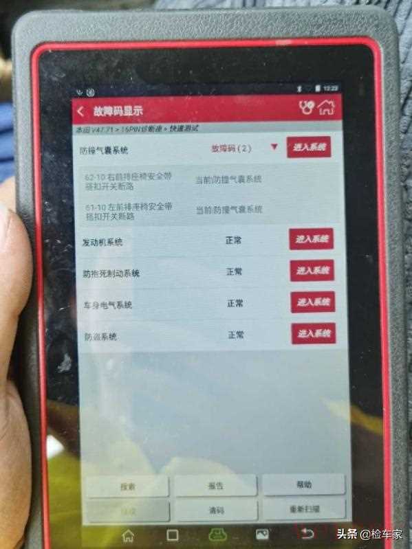 接下来就有意思了,我用解码器检测车辆电控系统,结果显示气囊有故障,但是我刚检查仪表的时候并没有发现有故障灯啊!因为气囊系统的特殊性,所以只要气囊系统有故障码,仪表就一定会亮气囊的故障灯。经过我反复多次地启动熄火后我也猜到了其中的原因。