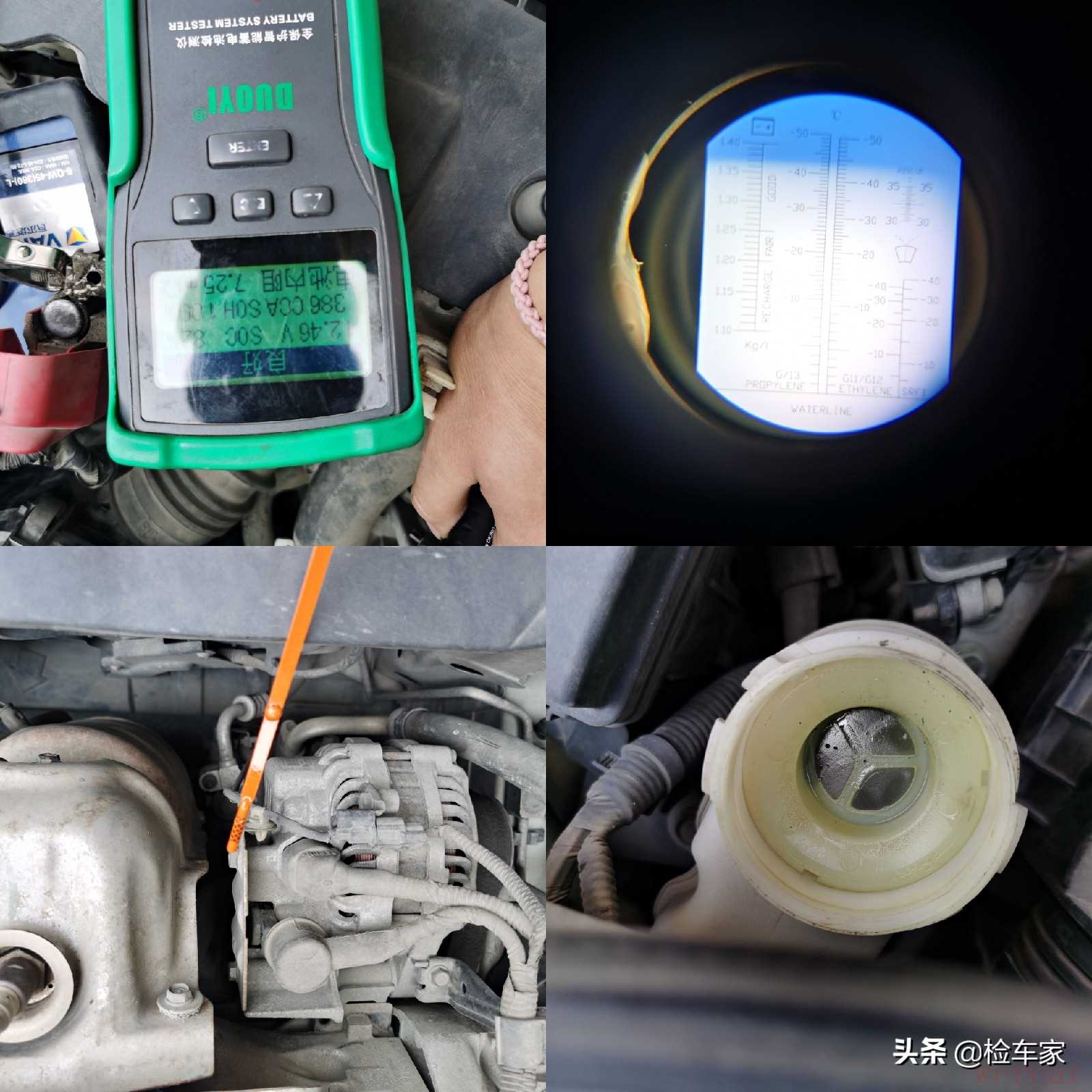 全车油水电也得来个全面的检查,刹车油由于油壶上面的滤网装配,除非暴力拆除,否则无法使用检测工具,不过肉眼观察油液成色偏黑,需要进行更换;机油和防冻液状况还是不错的,可以继续使用;电瓶电量也是正常的。总的来说这辆思铭的发动机舱状况还不错,我们就把视线转移到驾驶舱来。