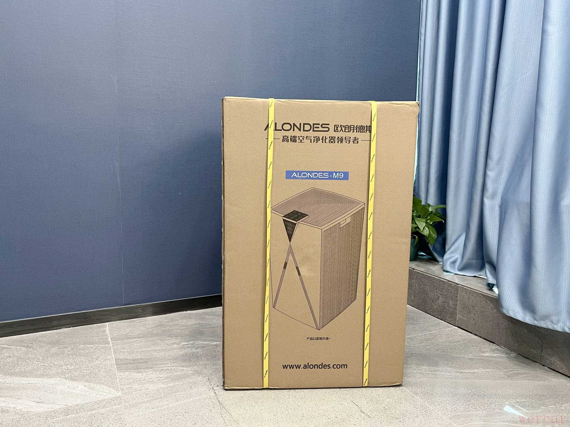 和很多大家电一样,欧朗德斯M9空气净化器的外包装也采用了纸箱,包装外面有简单的产品图案,没想到里面还有一层包装,而且再里面还有泡沫保护,机器被保护得很好,整个包装加机器还是很有分量的。