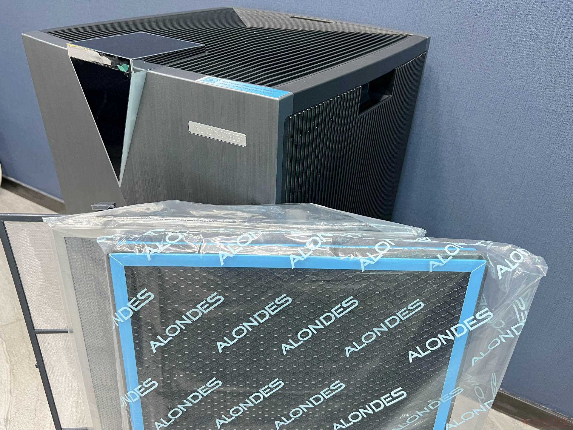 机身两侧都可以打开,并且两侧都是放滤芯的地方,在两侧的面板上有很多的小孔,可以达到很好的通风效果,和市面上大多数空气净化器的进风方式一样,欧朗德斯M9空气净化器也是采用了两侧进风,顶端出风的运行方式,这种方式也是很合理的。
