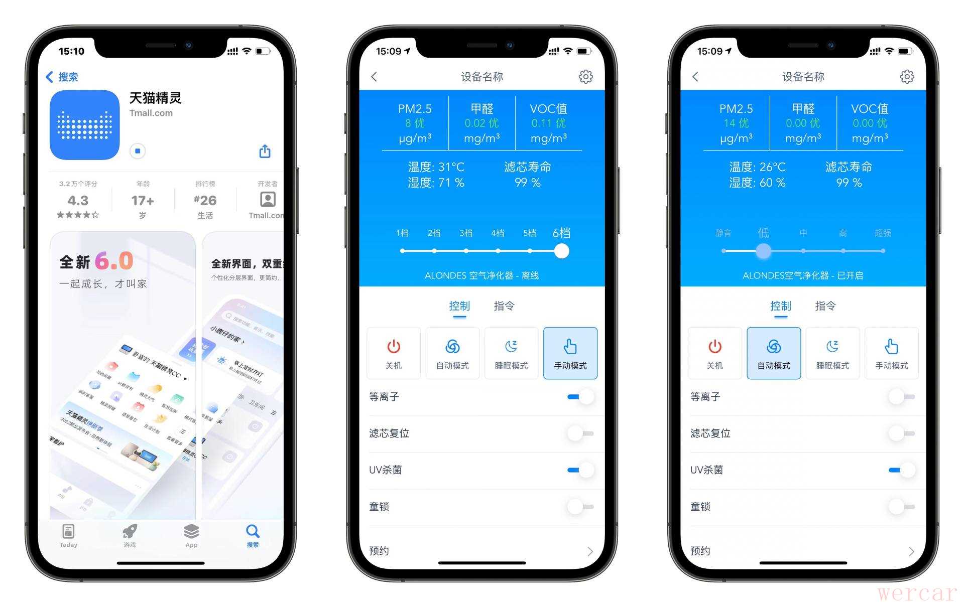 作为一款新时代的民用家电,所以智能化是必不可少的,这款空气净化器也是一样支持和手机App连接,并且可以扫机身的二维码连接家里的WIFI,可以下载一个天猫精灵软件,配对后家里有天猫精灵的就可以用语音控制空气净化器了,也可以直接在手机上控制这台空气净化器的功能开关,也可以看到一些数值,比如我比较喜欢它可以看滤芯的寿命,这点还是比较直观的。