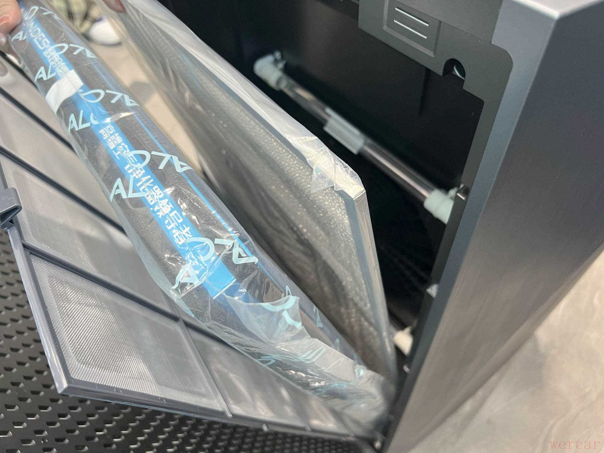 滤芯是需要一层一层装入的,装好后直接将盖子合紧就可以使用了,最外层是初效滤网,这一层主要是过滤一些比较大的物体,比如毛发和大颗粒物灰尘等,这一层也是相对来说比较容易清理的,初效滤网用干毛刷刷去表层堆积的灰尘,要注意二层复合滤网是不可以清洗的。