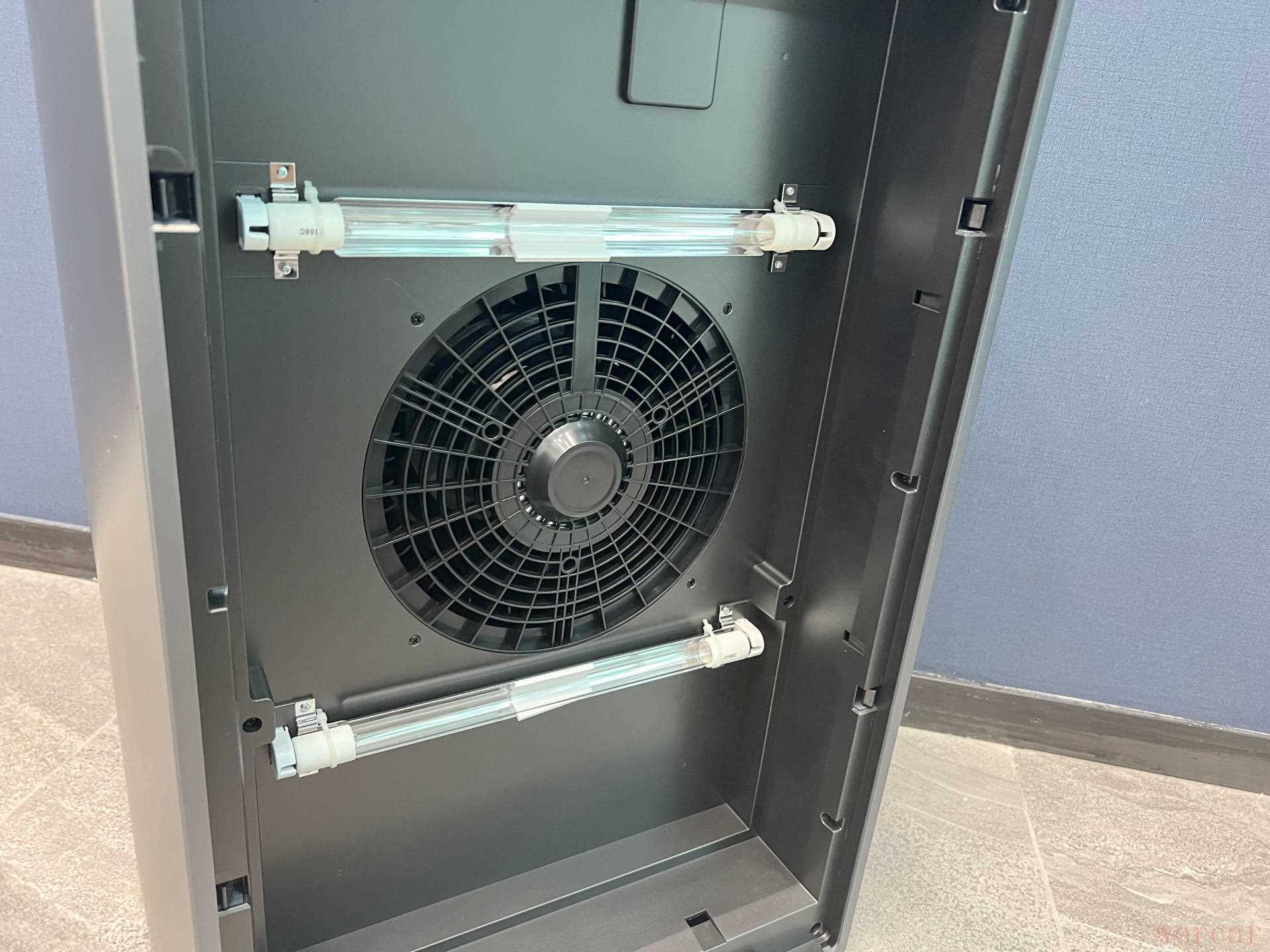 欧朗德斯M9空气净化器是支持等离子消毒杀菌功能的,在里面有紫外线灯管,因此支持UV杀菌功能。可以看到进气口采用了圆形的设计,空气也能很好地进去,双侧都有进气口,欧朗德斯M9空气净化器采用了双涡轮的引擎系统,这样除醛净化更高效,更适合大面积净化。