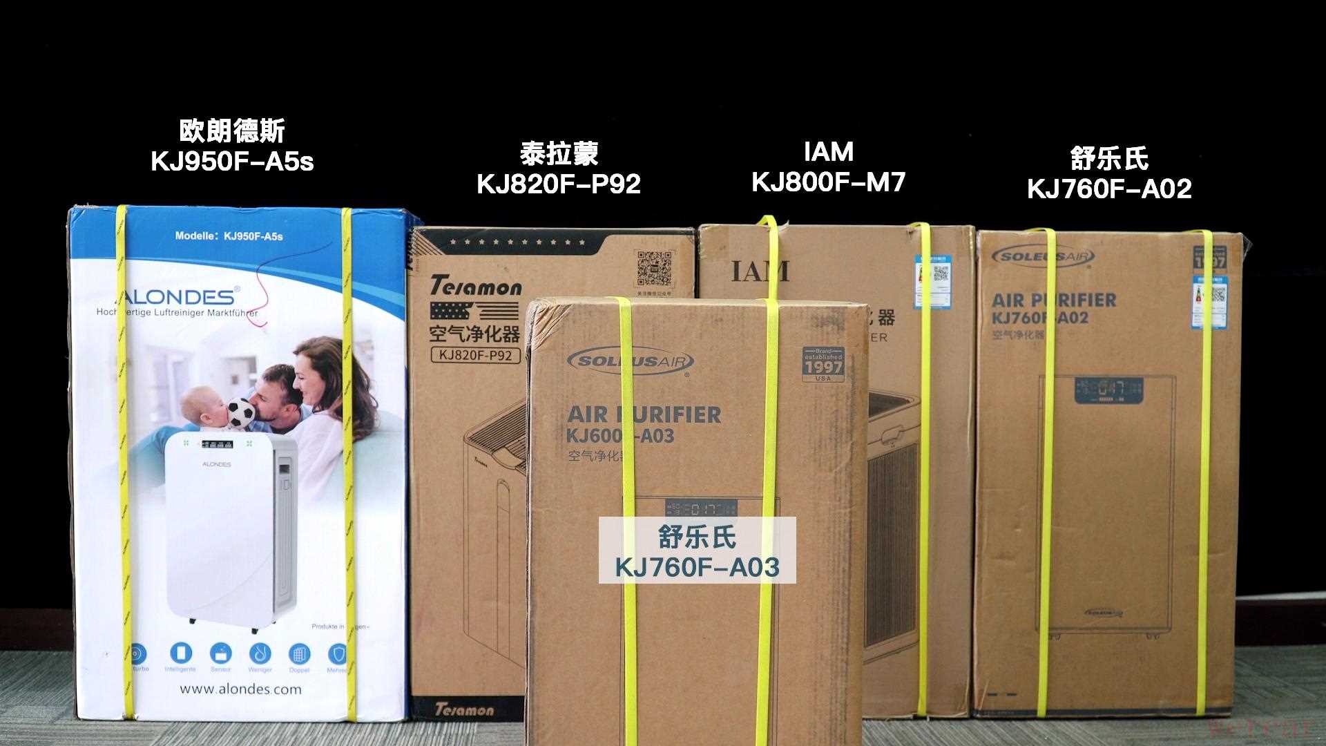 这四款产品分别是欧朗德斯KJ950F-A5s、泰拉蒙KJ820F-P92、IAM KJ800F-M7,以及舒乐氏KJ760F。因为舒乐氏这款产品有两个版本,A02全屋版和A03卧室版,我们两个版本都买了,所以这次算是一共有五款产品。