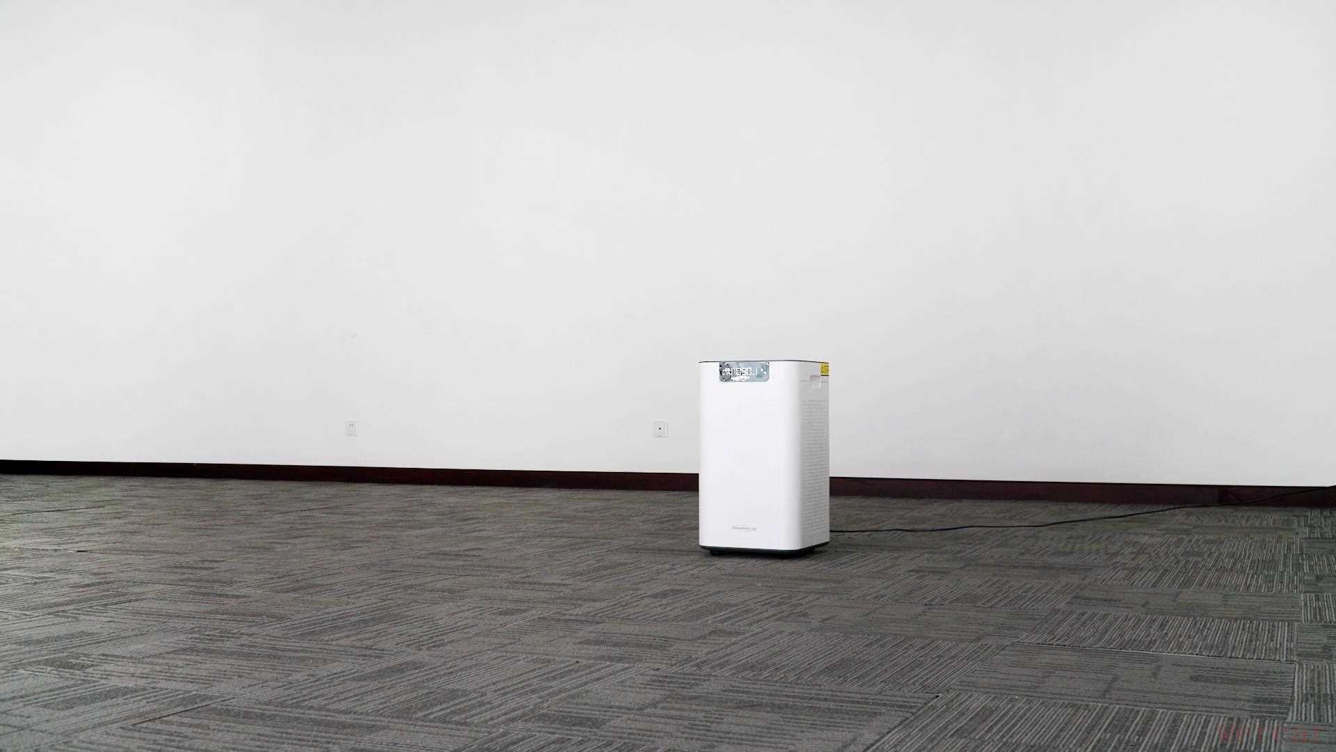 在实测的环节中,我们模拟真实的使用环境,选择了一个60平左右房间,将净化器放置在房间中央的位置,同时还放置了一台PM2.5检测仪,用于记录室内的PM2.5数值变化。