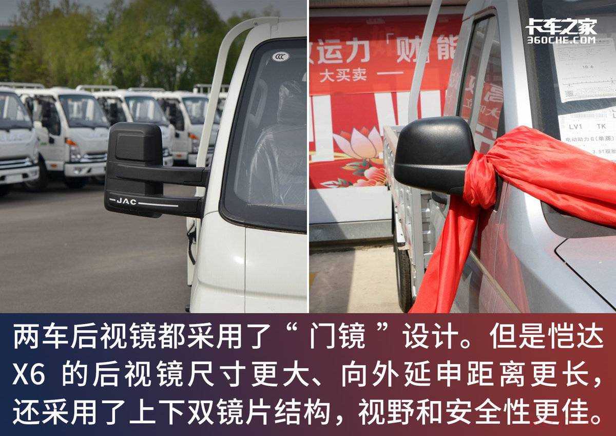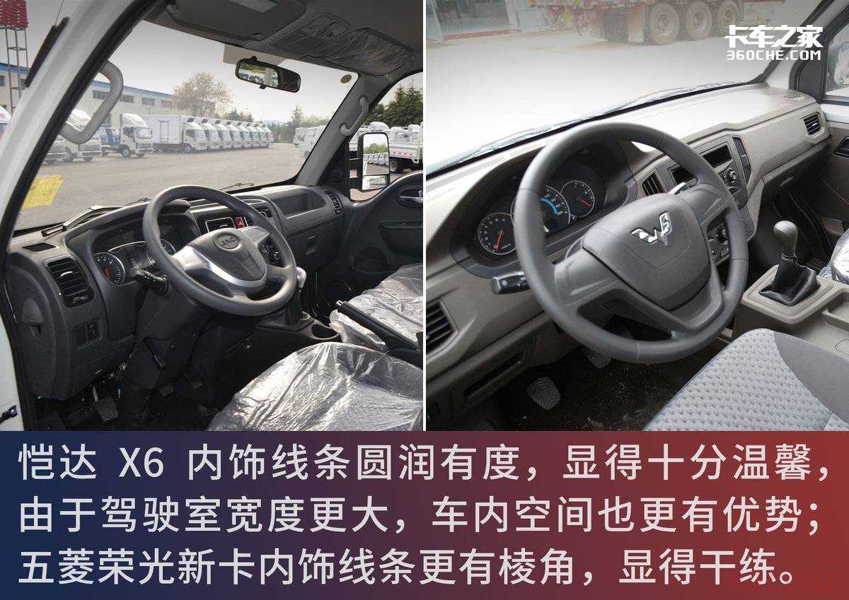驾驶室尺寸方面,恺达X6要更胜一筹。同时,两车均采用了“凸头”设计、或者说“尖头”设计,其优势在于,当发生碰撞时可以有效地降低驾驶室的变形程度,减缓撞击力度、保护驾驶员。