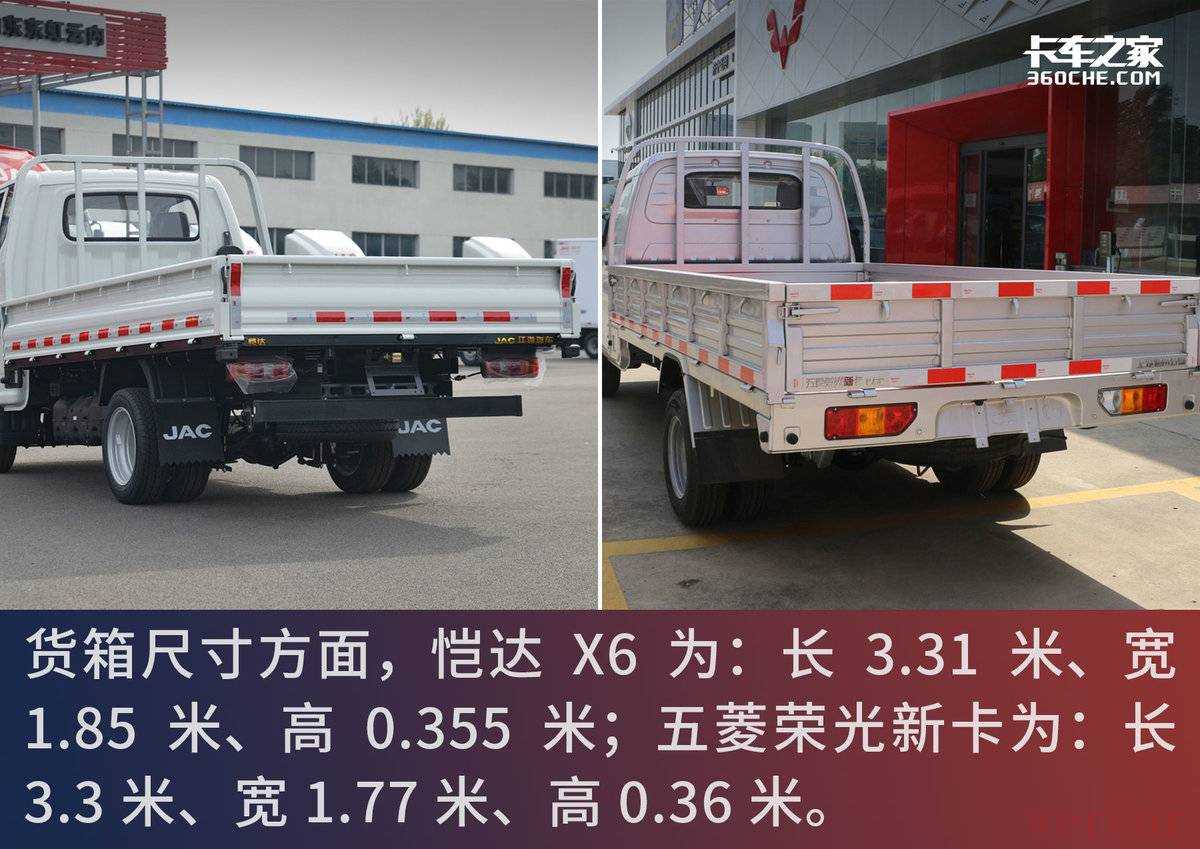 两车均为3米3货箱级别的汽油小卡,但是在货箱宽度方面,恺达X6要多出80mm,略胜一筹。