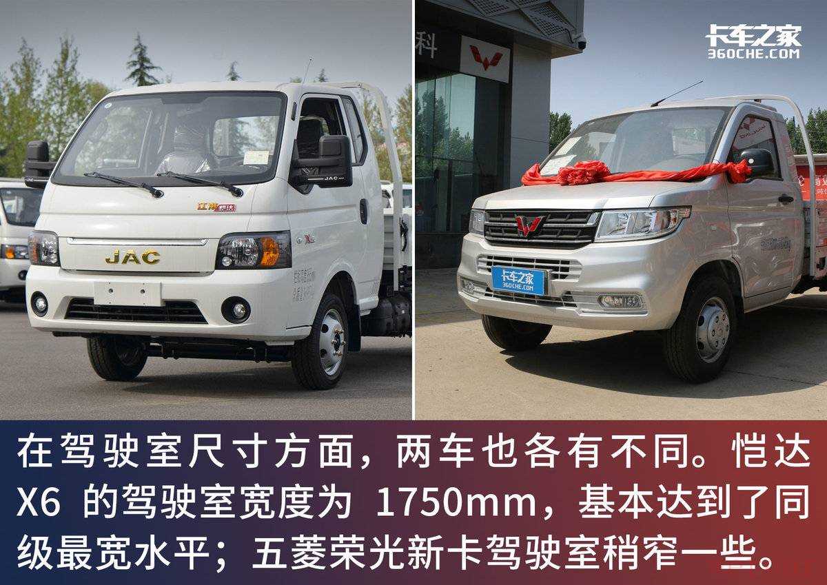 总体来说,江淮1卡恺达X6在驾驶室宽度、货箱宽度和驾驶室舒适性方面要胜过五菱荣光新卡一筹,其同级少有的EPS电动助力转向是非常大的亮点;另一边,在发动机排量、动力方面,五菱荣光新卡又扳回一局,两车不分伯仲。