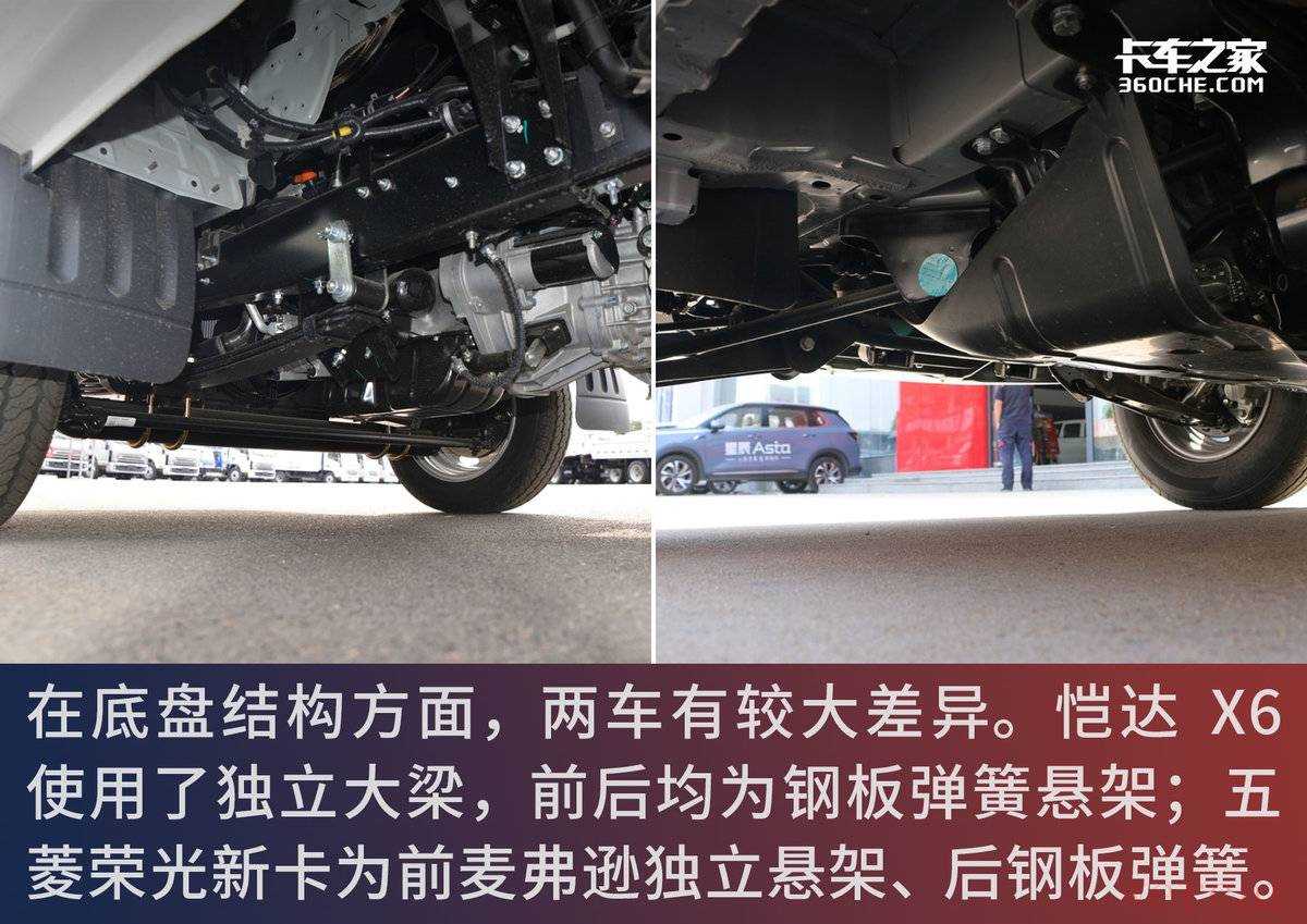 五菱荣光新卡使用了半承载式车身结构,车架与底盘是刚性焊接在一起的,这种车身结构相较于恺达X6来说,硬性承载能力有所降低。
