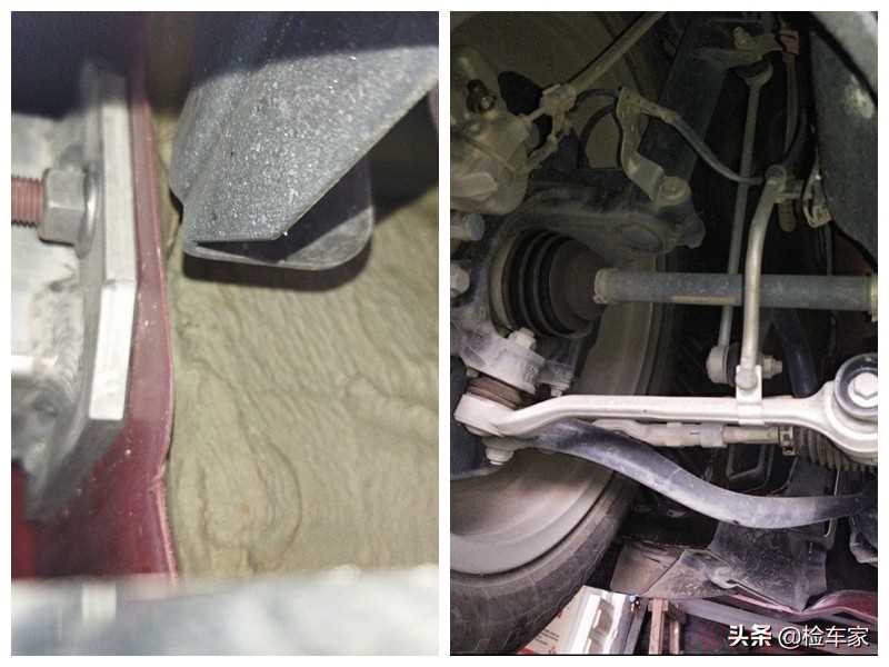 然后对车辆后部纵梁车体结构进行检查,没有发现受损维修痕迹,螺丝也不存在拆卸现象,排除尾部存在事故撞击;车辆前后悬挂检测后也没有发现异常,螺丝无拆卸、悬挂部件无弯曲现象。