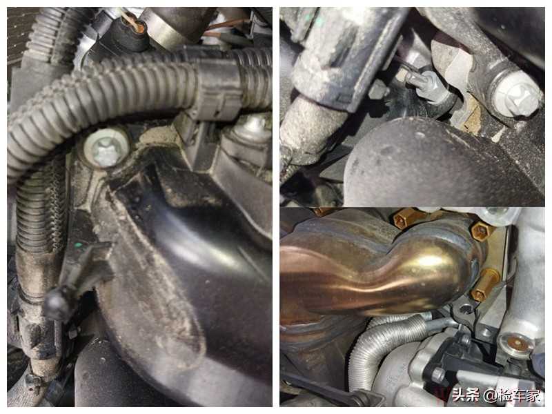接着来检测发动机部分,可以看到气门室盖没有拆卸痕迹,缝隙处也不存在渗油痕迹,发动机两侧进排气歧管固定螺丝同样也不存在拆卸痕迹,初步排除发动机分解维修嫌疑。