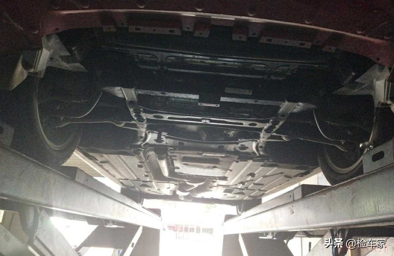 紧接着把车开到附近的修理厂进行上架对底盘检测,车辆升起来后底盘看上去中规中矩,没有明显的托底和漏油痕迹,看上去也符合目前公里数。
