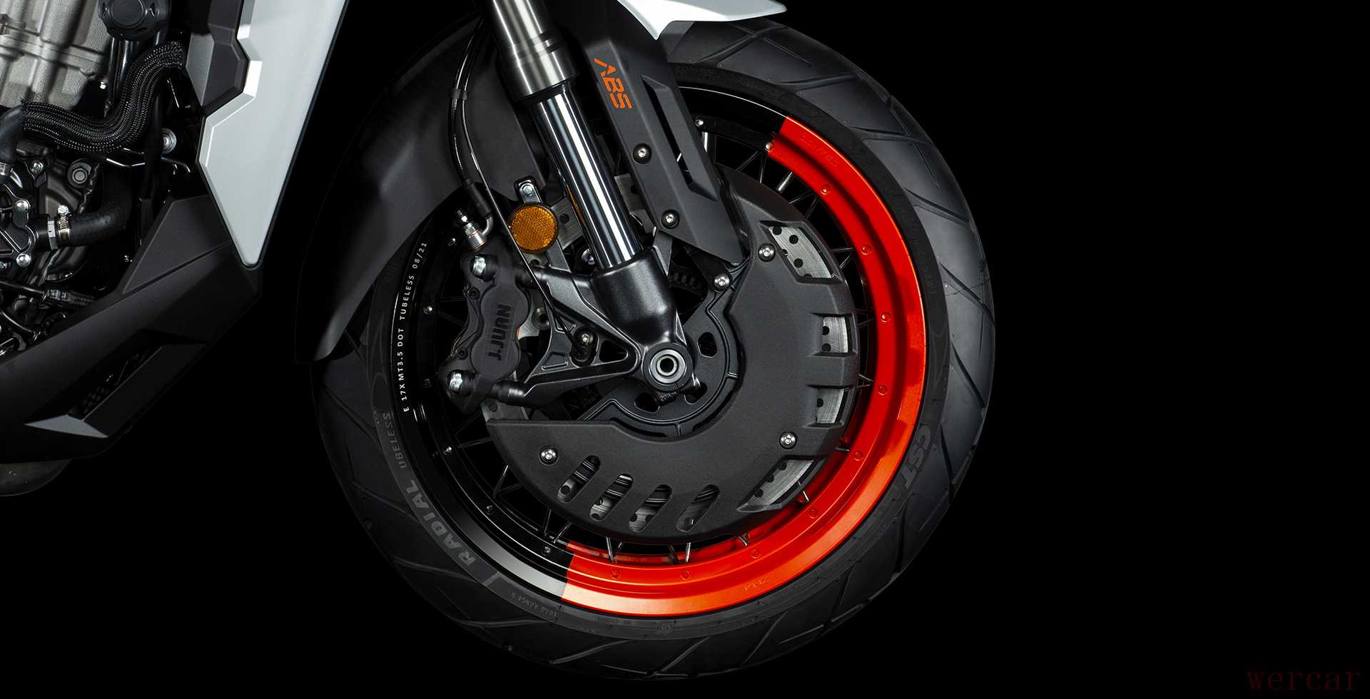 350GK采用真空辐条轮毂和铝合金后摇臂,降低簧下质量提升操控轻盈感的同时让整备质量仅为188kg,并且对颜值来讲也是个加分项。