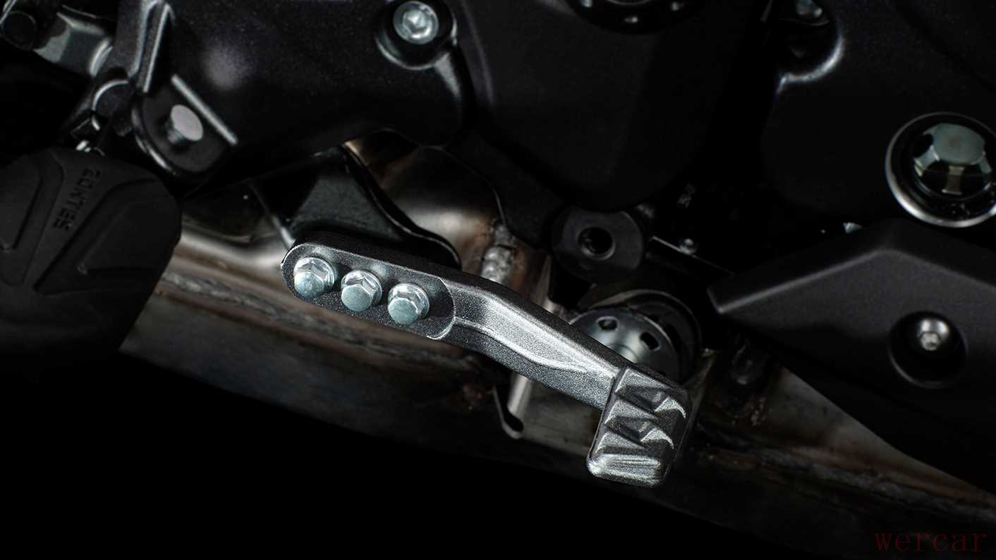 后制动为265mm单盘单活塞配置。而且后刹踏板还做了贴心的小设计,可以进行前后三段的位置调节。双通道的ABS和滑动离合也是标配。