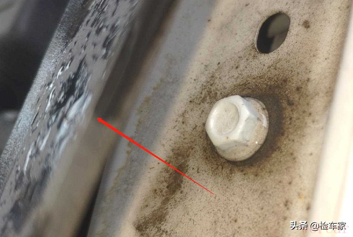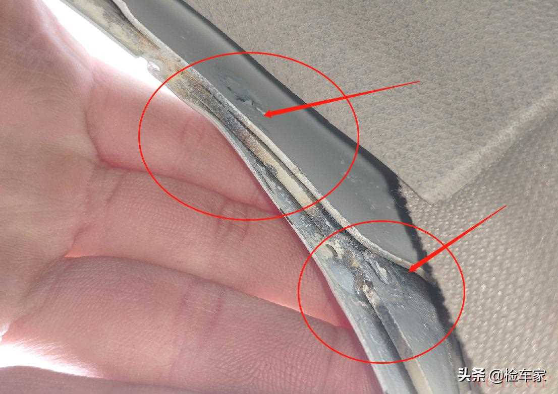 于是我扒开胶条,从内侧检查了一下,果然看到重新焊接留下的痕迹。