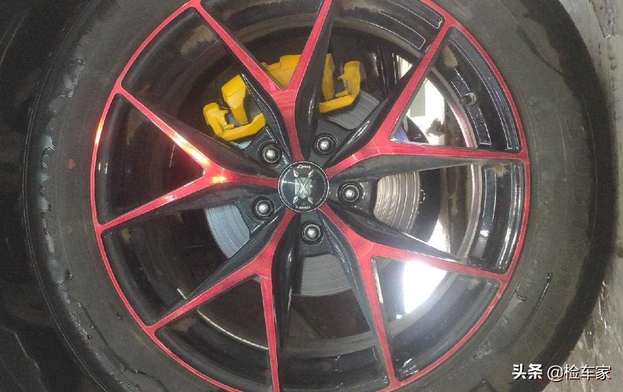 最后来看一下底盘的情况,可以看到四条轮毂都是有过改装更换的,轮毂的样式大胜我个人觉得倒是不错,就是颜色换个黑色应该会更好一点吧。