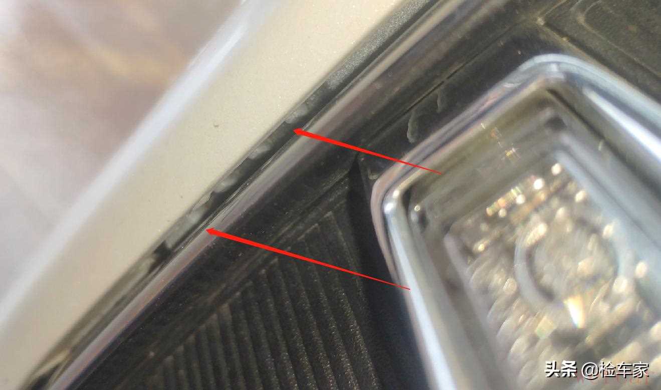 老规矩还是先检查外观,可以看到前保险杠与雾灯饰板连接处的部分存在喷涂不均匀,且边角位置缝隙大,因此,我判定前保险杠存在更换。