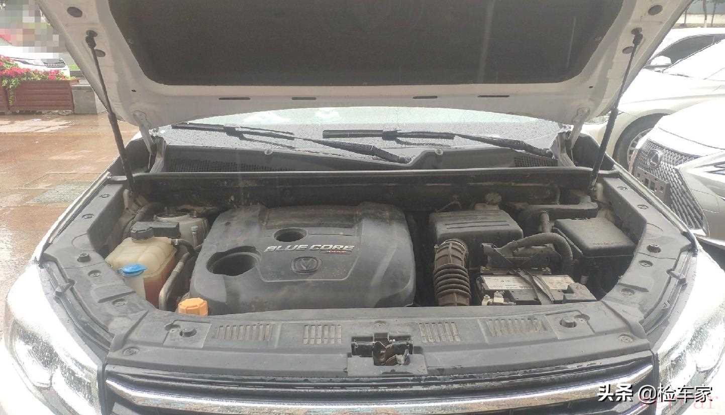 那就是这辆长安CS75更换过左右侧围上半段以及车顶,所以才会两侧的ABC柱都有过切割烧焊,而车辆下边梁和后围板却没有问题。至于为什么要这样切割,那咱们就不知道了,可能是高空抛物砸狠了吧。下面来检查发动机舱。