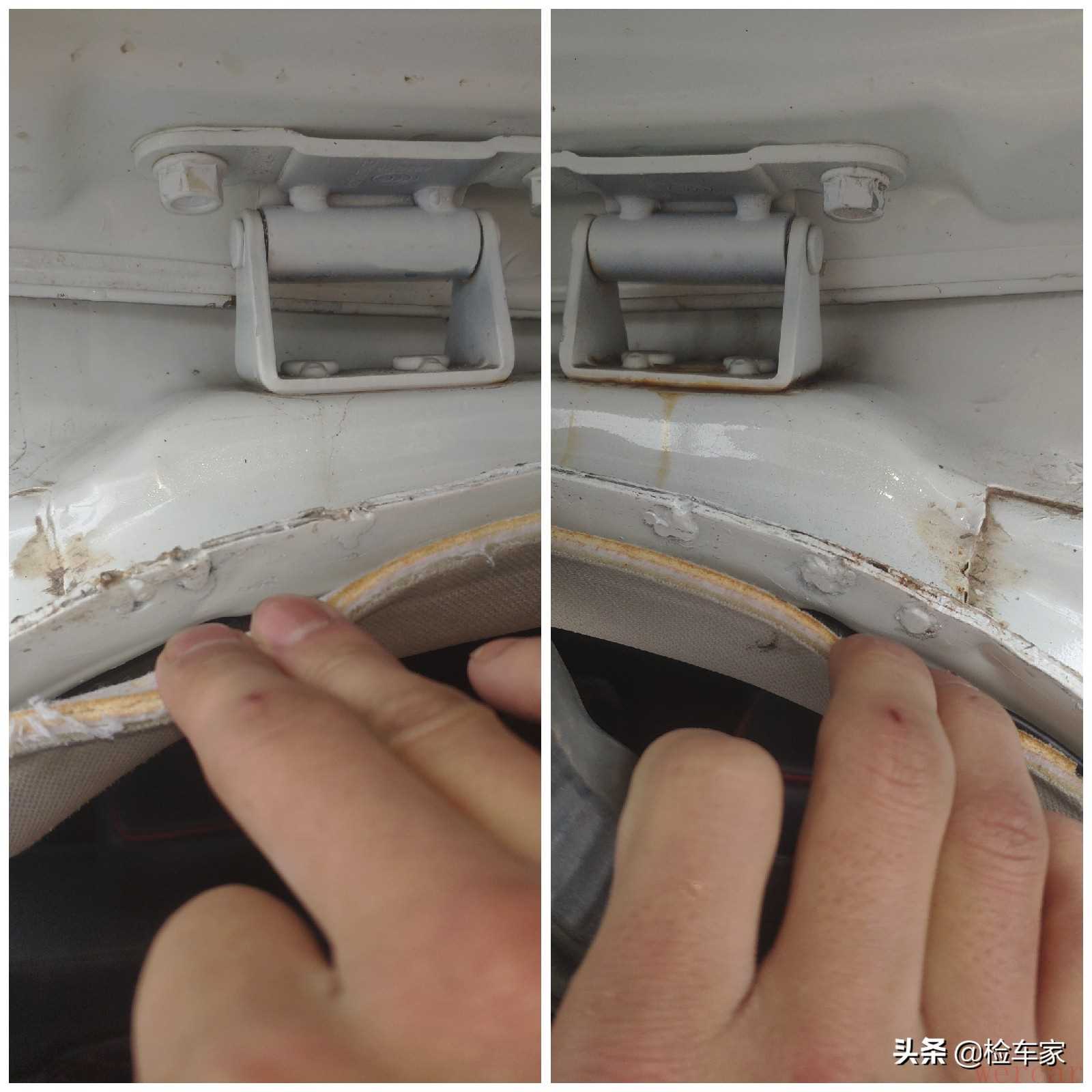 并且后尾盖内侧门框边缘处同样存在切割烧焊的痕迹。看到这里我不禁感叹这辆车是经历了什么啊,基本上到处都有切割烧焊,难道这辆车被四个方向的来车撞过?不可能啊!带着疑问,咱们继续看其它地方。