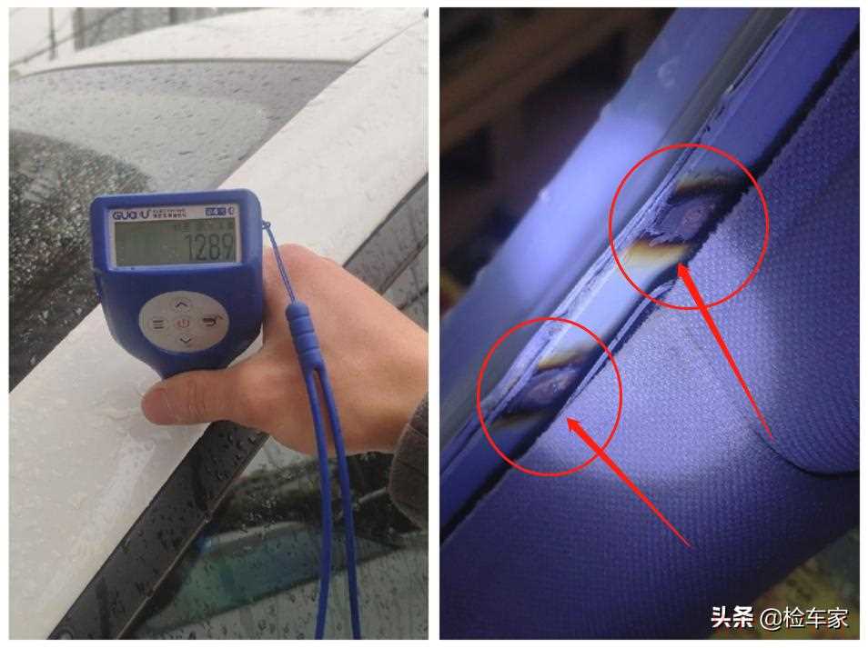 接下来是右侧C柱,经过检测发现同样有过切割痕迹,切割痕迹为线型一直往内侧延伸;右侧A柱也有过切割痕迹。看到这里,我终于明白这辆车是怎么回事了,和我刚刚的猜测差不多,真相只有一个。