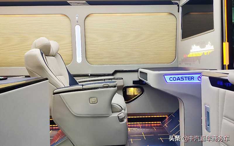 在以上硬件设施的基础上,丰田考斯特11座商务接待车还有别的商务车无法比拟的优势,丰田考斯特的车内空间很大,车内高度足够正常成年男性在车内直立行走。车内座椅的排列也保证了每个座椅之间足够大的间隙,这种间隙并不是别的商务车强调的几拳几指的距离。整体而言,丰田考斯特11座商务接待车给人的第一印象就是开阔,一种不仅是物理层面的开阔。在这样的车厢内,能够让人身体放松,心情愉悦。这种精神享受是哪怕千万级别的劳斯莱斯、兰博基尼也无法带来的。