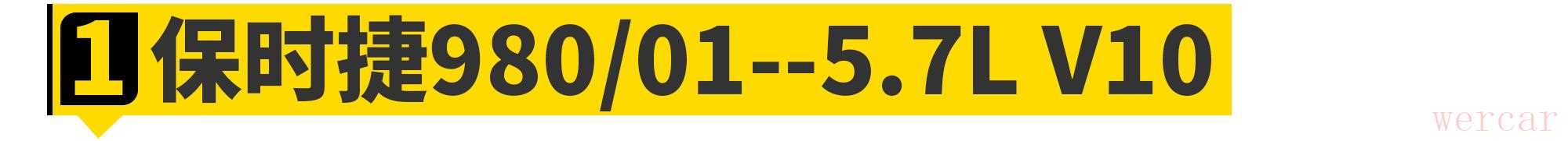 1998年,保时捷想用自己在赛场上的技术研发一台街道超跑,短短几年后,Carrera GT就在2003年日内瓦车展上亮相了。除了与911完全不同的车身布局以及独特的外形,Carrera GT最大的亮点莫过于它搭载了一台5.7L V10自然吸气发动机,这台高转V10发动机在8000转时能输出612匹马力,也是保时捷迄今为止唯一一台V10自吸发动机。