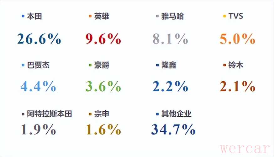 您提到的数据似乎有些不准确或需要更详细的背景。截至我所知的信息,日本本田(Honda)是全球最大的摩托车制造商,但具体的市场份额和排名可能会随时间和地区而变化。在中国市场,豪爵(Haoge)是领先的品牌之一,但在全球范围内,日本本田、铃木(Suzuki)和雅马哈(Yamaha)等品牌也占据重要地位。