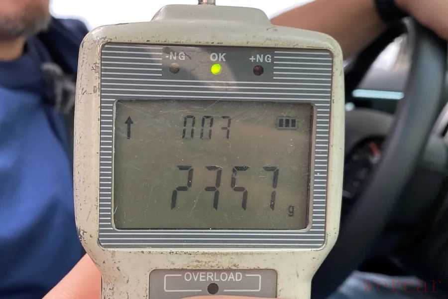 我们在同一路段(地面摩擦力相同),胎压调至厂家标准胎压,使用标准模式,用拉力计原地匀速旋转方向盘90度,取最大数值。