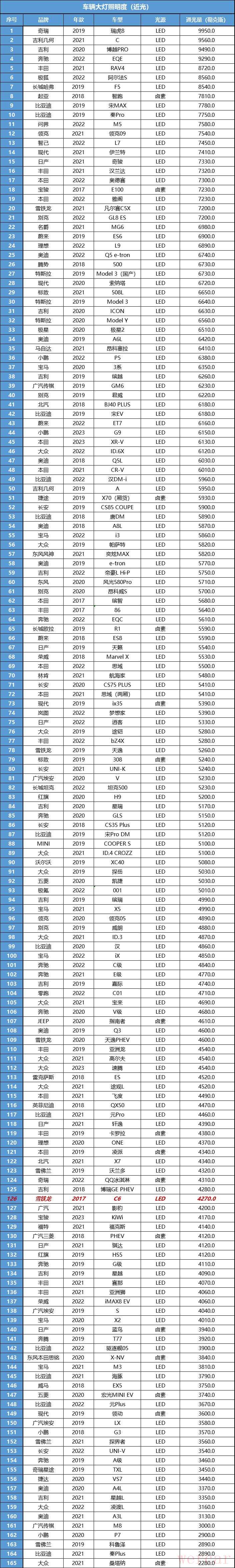这辆车的大灯是LED光源,最大光照度为4270勒克斯,比较一般。