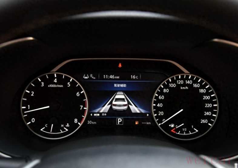 仪表盘科技感十足,中央的7英寸彩色屏幕可以显示非常丰富的信息,娱乐系统、导航系统、行车电脑以及安全系统的信息都有。