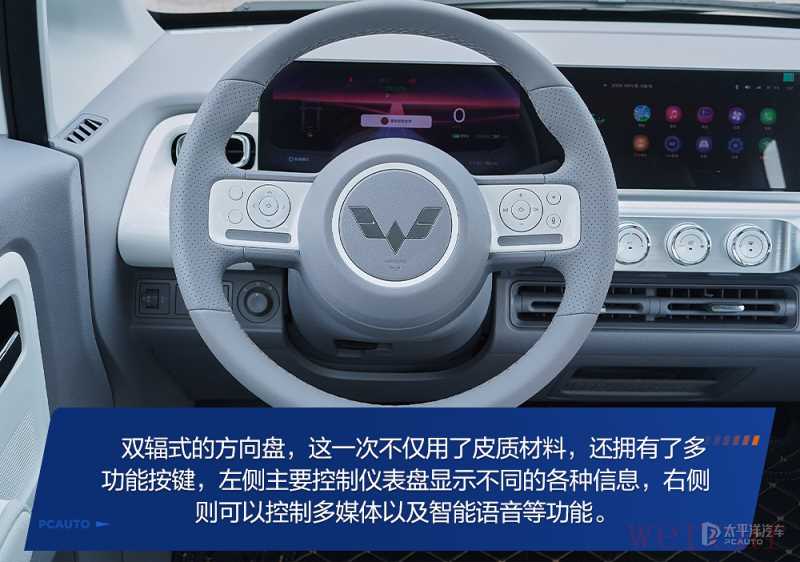 值得一提的是,新车在用车便捷程度上,可以说是有着非常明显的优化。首先之前需要选装的中控屏幕,这次也在两座版和四座版的高配车型中出现,储物空间相比之前也明显的增多,全车多达14个实用储物空间。另外在安全方面,除了更高强度的车架之外,新车还增加了刹车辅助、牵引力控制、车身稳定系统、胎压报警、主副驾安全气囊以及儿童安全座椅接口等主被动安全配置。可以说新车的内饰、配置以及安全性,相比五菱的其他小型纯电车,都有了质的飞跃。